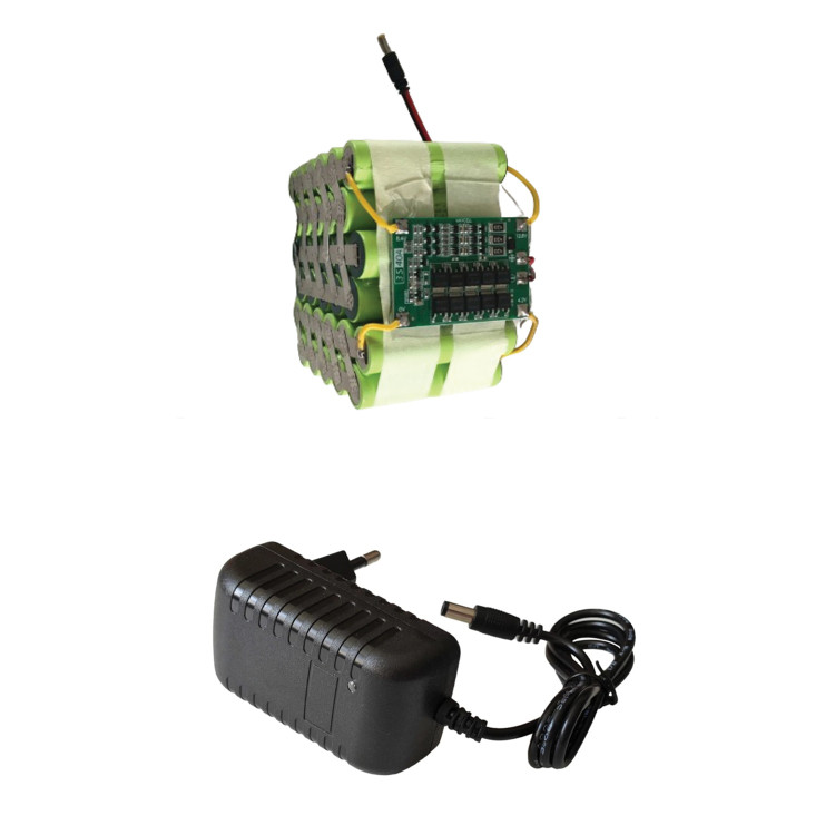 رنج ولتاژ خروجی پک باتری از حدود 9 ولت تا 12.6 ولت می باشد و جهت شارژ نیاز به شارژر مخصوص سه سلولی باتری لیتیوم ایون با ولتاژ 12.6 ولت می باشد